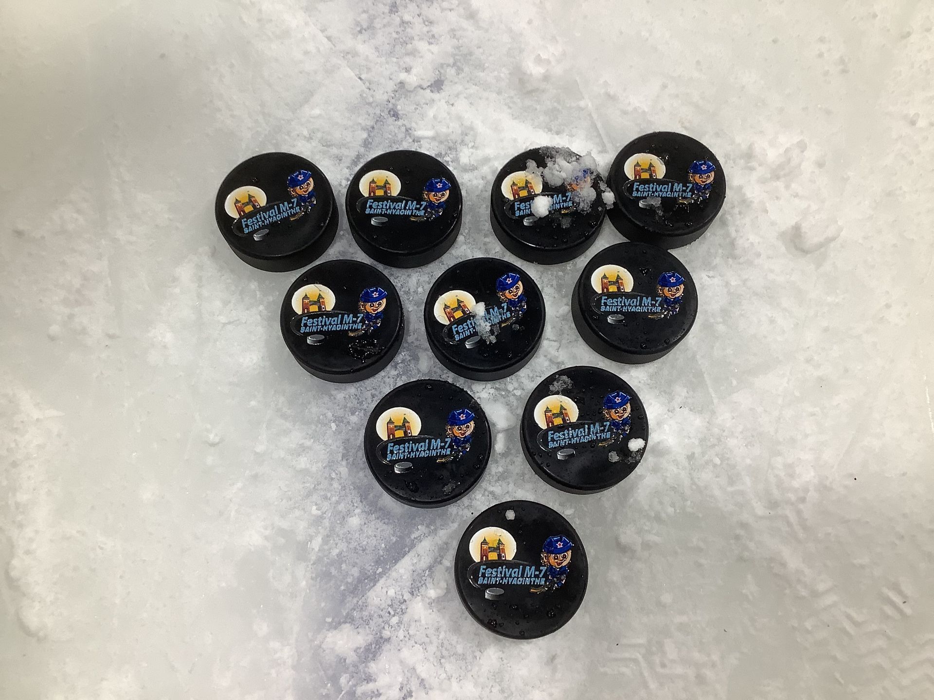 À L’ARRIÈRE DANS LE MÊME ORDRE : Michel Plouffe, représentant de l’AHMSH; Dominique Lussier, animation; Josée Corbeil, accueil des équipes et équipements; Christiane Lussier, présidente et Yves Desrosiers, trésorier. Grizzou, Rookie et Zambo.